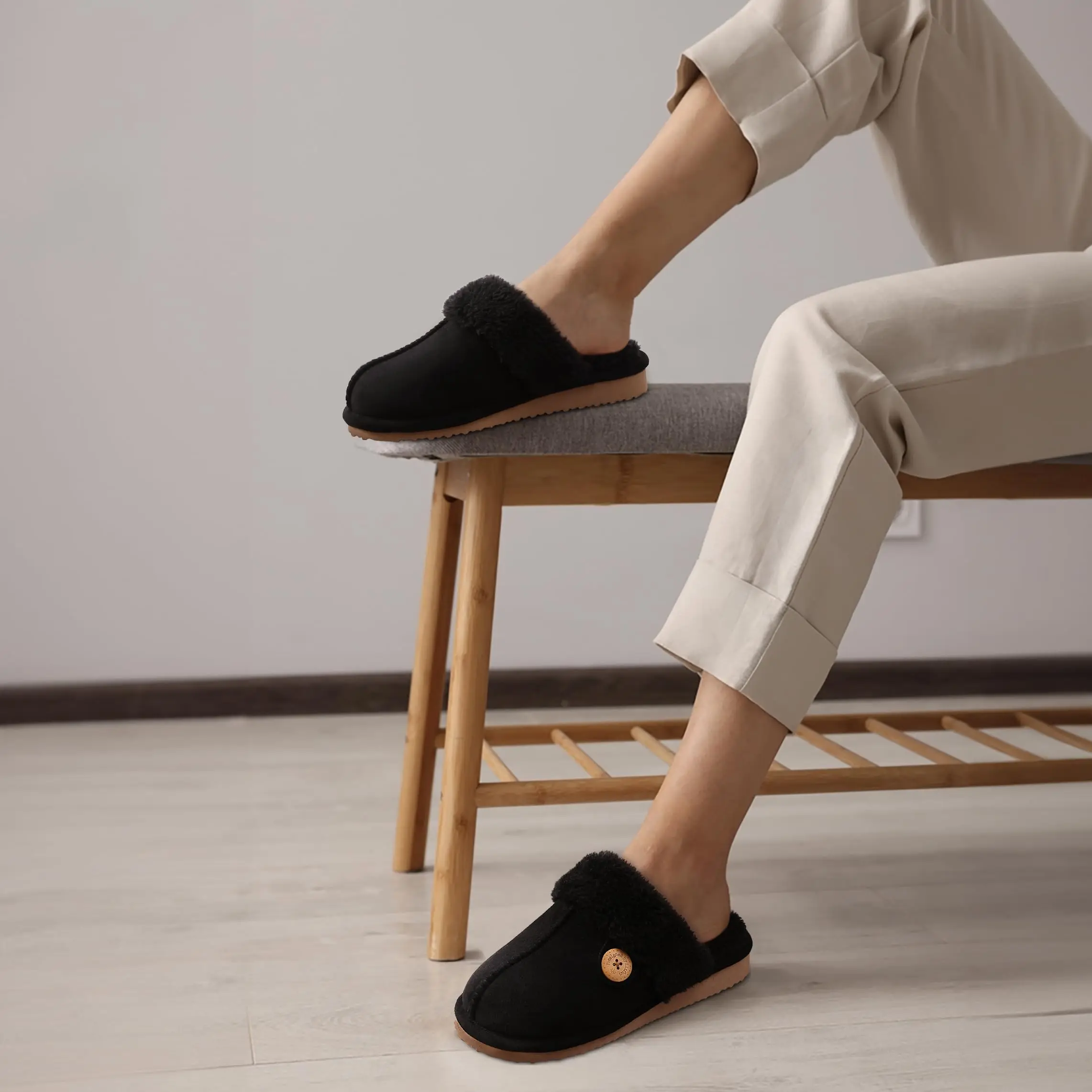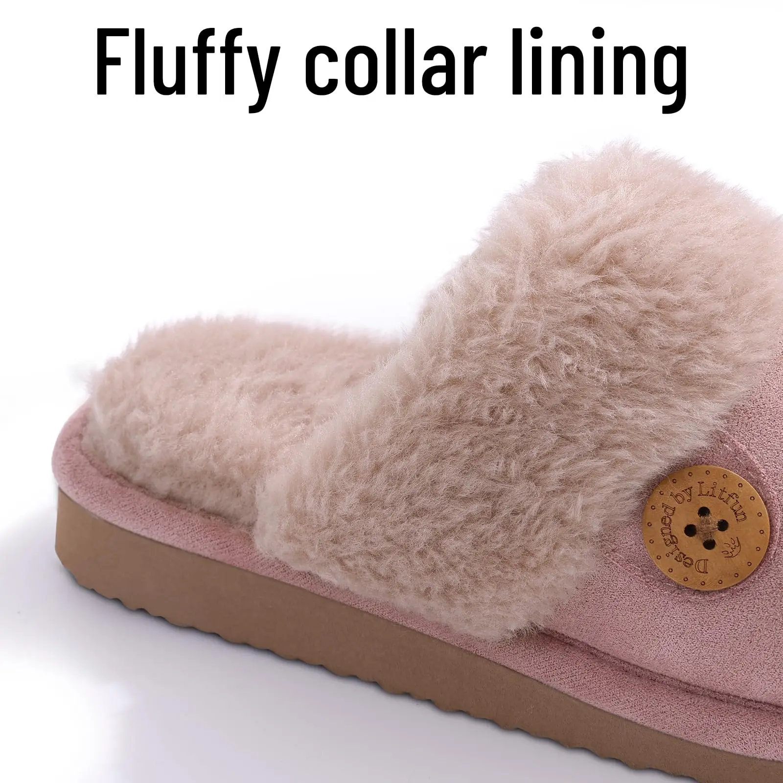 Evshine Women Fur Plush Slippers Indoor Warm Plush Home Cotton Shoes Winter Outdoor Plush Closed Rubber Home Shoes For Women